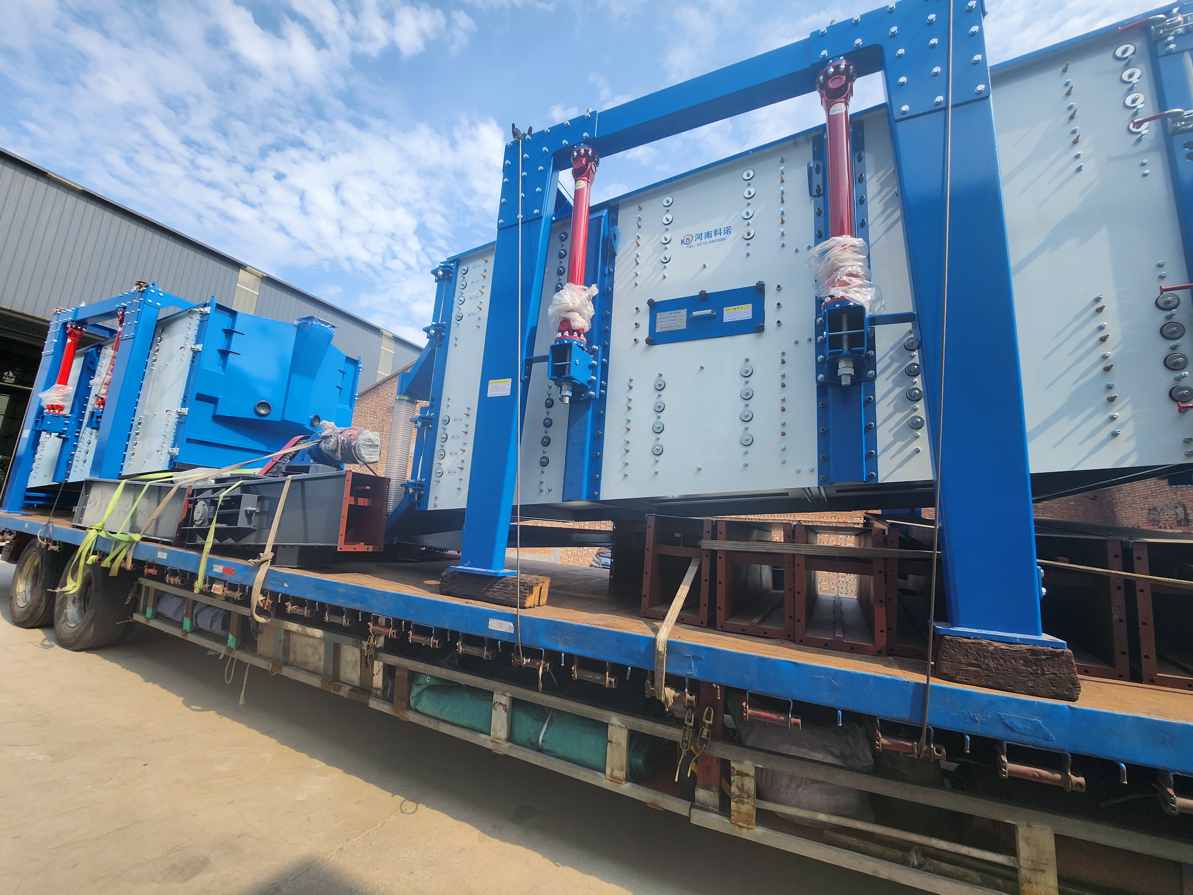 本次發貨的FU刮板機、烘干料暫存系統、方形搖擺篩;物料經烘干后通過皮帶機輸送到FU刮板機,把物料輸送到各方形搖擺篩暫存倉系統,使得物料均勻喂入方形搖擺篩,提高篩分產能和精度。